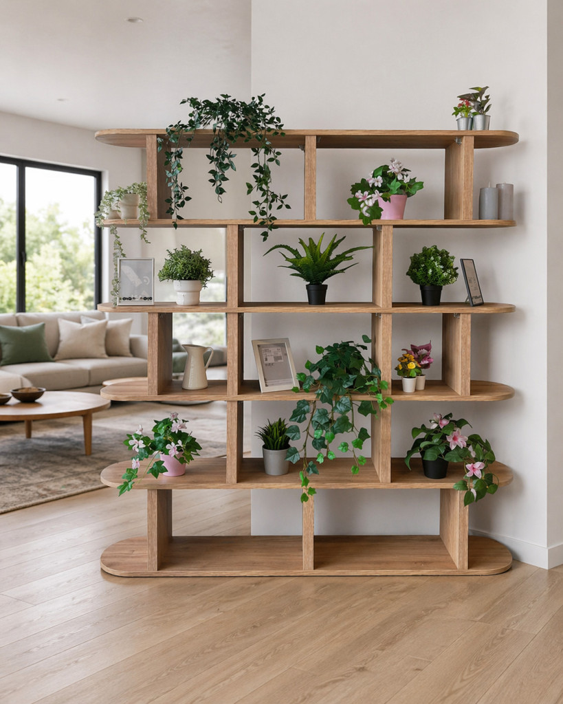 Tamamen ahşap görünümlü tasarımı ile doğal ve sıcak bir atmosfer oluşturur. Çoklu raf sistemi sayesinde geniş depolama ve sergileme alanı sunar. Salon, ofis ve çalışma alanlarında rahatlıkla kullanılabilir.