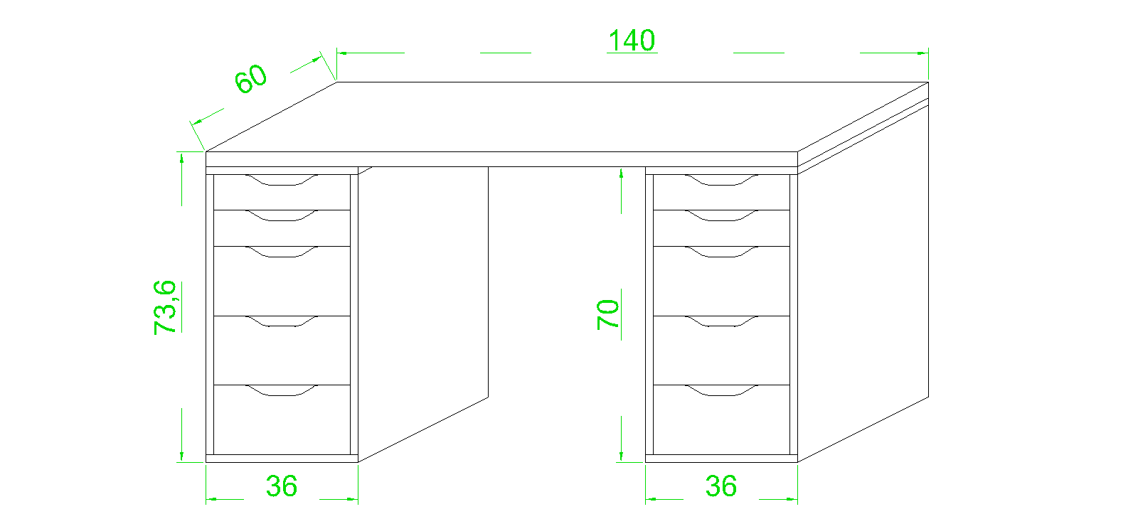 Çift çekmeceli modülü ile geniş depolama alanı sunar. Minimal ve modern tasarımı sayesinde hem ev-ofis hem profesyonel kullanım için uygundur. Geniş tabla yüzeyi konforlu bir çalışma alanı sağlar.