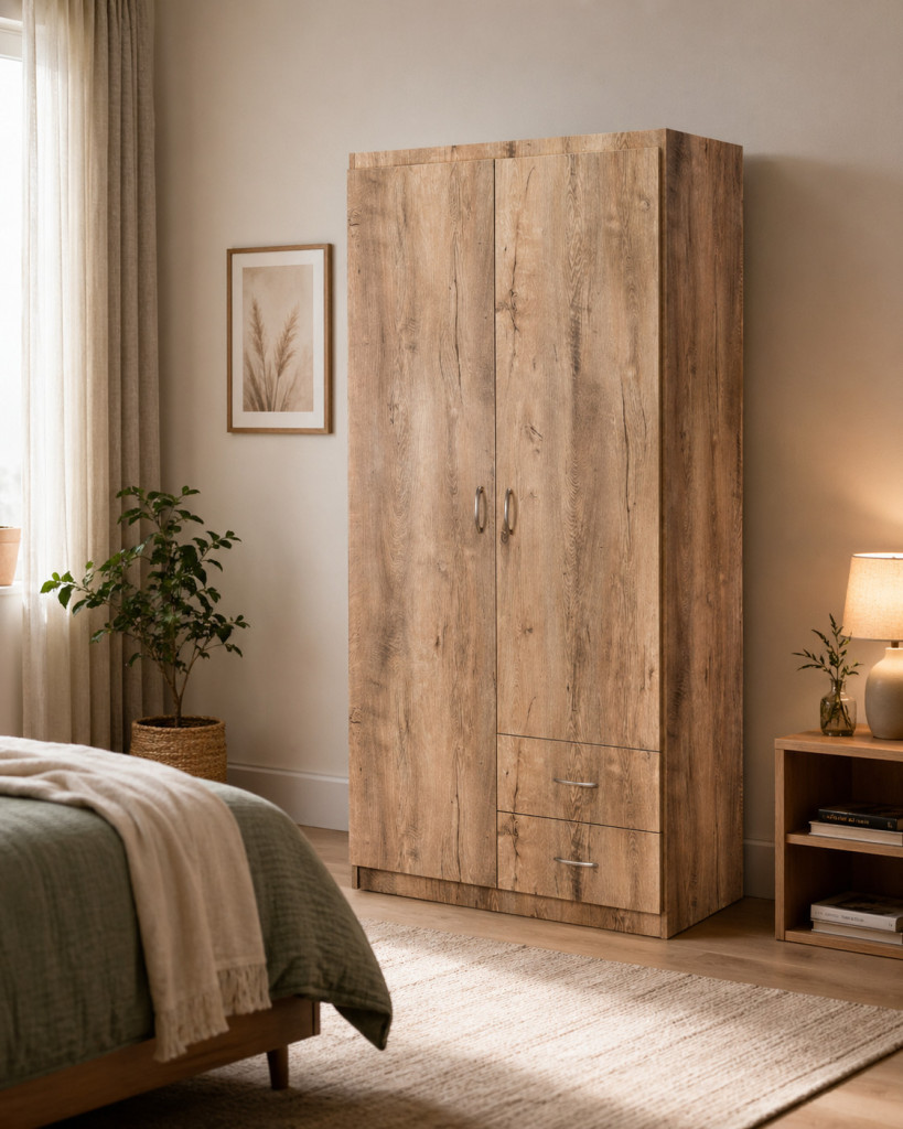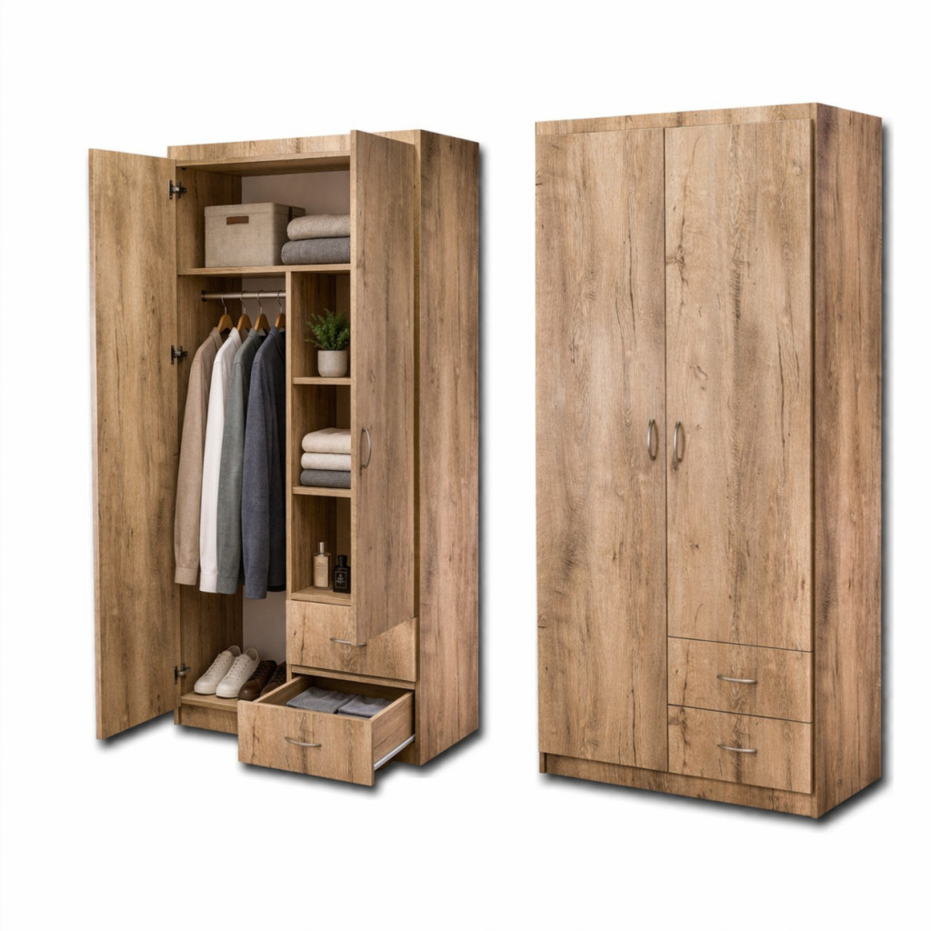 Geniş iç hacmi, askılık bölümü ve alt çekmece modülü ile fonksiyonel bir depolama çözümü sunar. Hem askılı hem katlanabilir kıyafetler için pratik kullanım sağlar. Modern ve sade tasarımı ile yatak odalarına uyum sağlar.