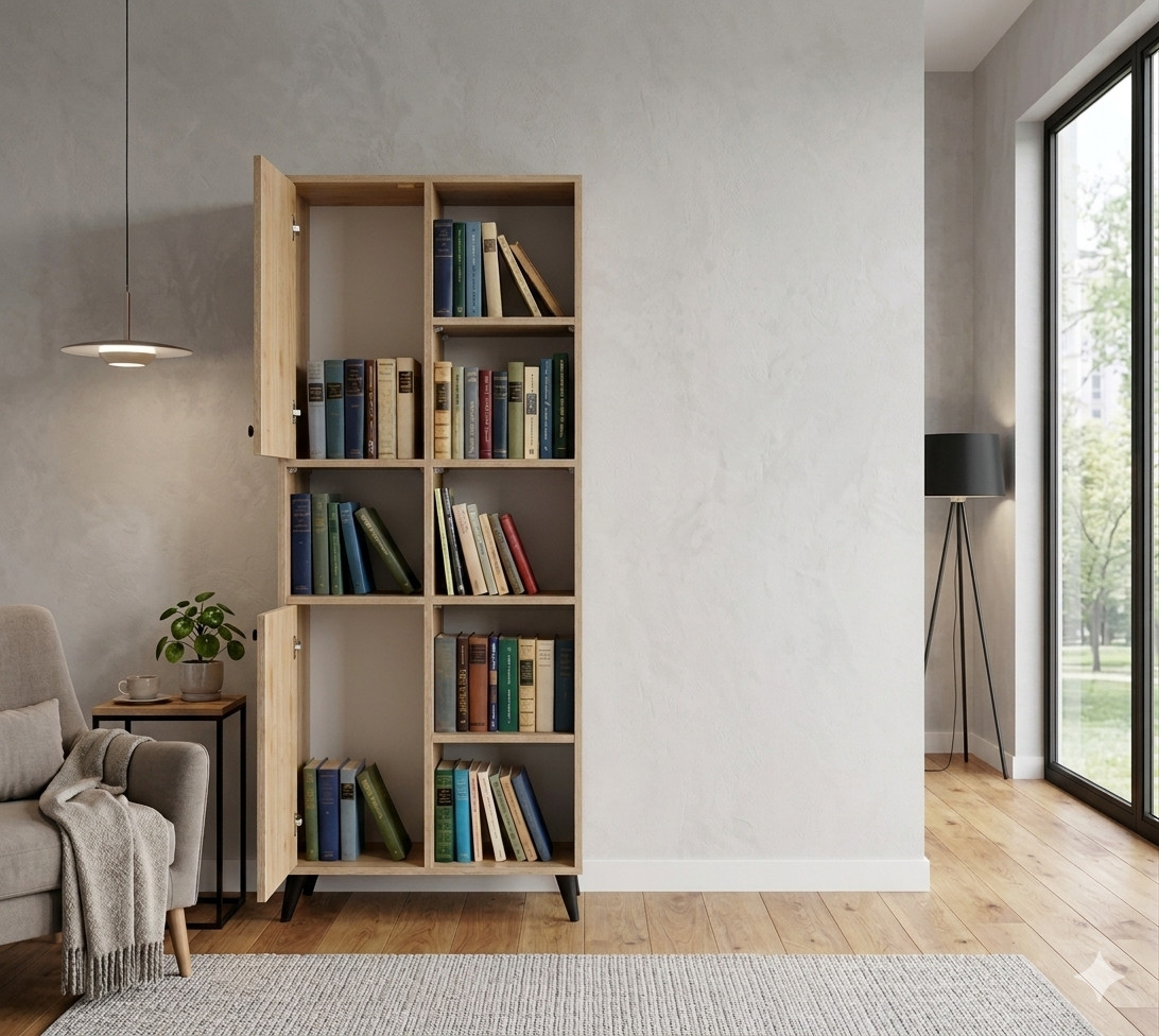 Raf ve kapaklı alt modül kombinasyonu sayesinde hem açık hem kapalı depolama alanı sunar. Modern ayak yapısı ile mekâna hafif ve şık bir görünüm kazandırır. Salon, ofis ve genç odalarında rahatlıkla kullanılabilir.