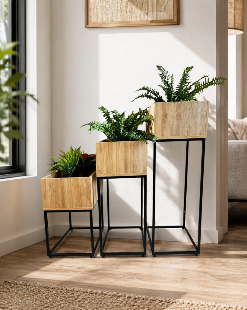 Farklı yüksekliklerde tasarlanan modülleri sayesinde dekoratif bir bitki köşü oluşturur. Minimal kare formu modern dekorasyon stilleri ile uyumludur. Set veya tekli kullanım için uygundur.