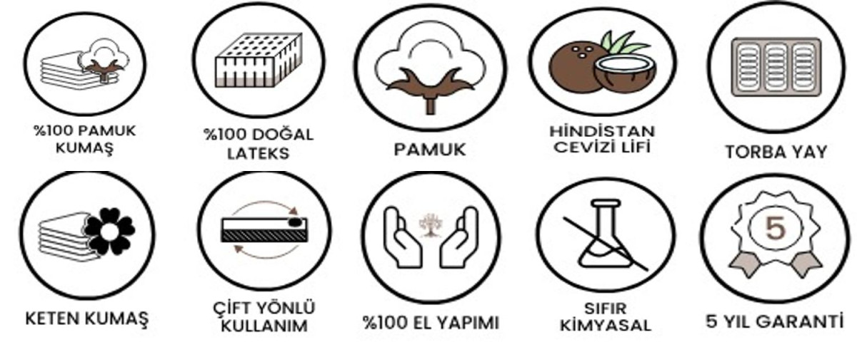 Doğal Malzemeler: Hindistan cevizi lifi, lateks ve pamuk gibi üstün kaliteli malzemelerle tasarlanmıştır.